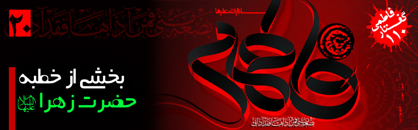 «...آن گاه خطاب به حاضران در مسجد فرمود: ای مردم! بدانید بی تردید من فاطمه هستم؛ و پدرم محمد (ص) است. این نخستین و آخرین گفتار من با شماست. در آنچه که می گویم نه از راه صواب به خطا رفته ام و نه به عمد از آن کج روی دارم.
